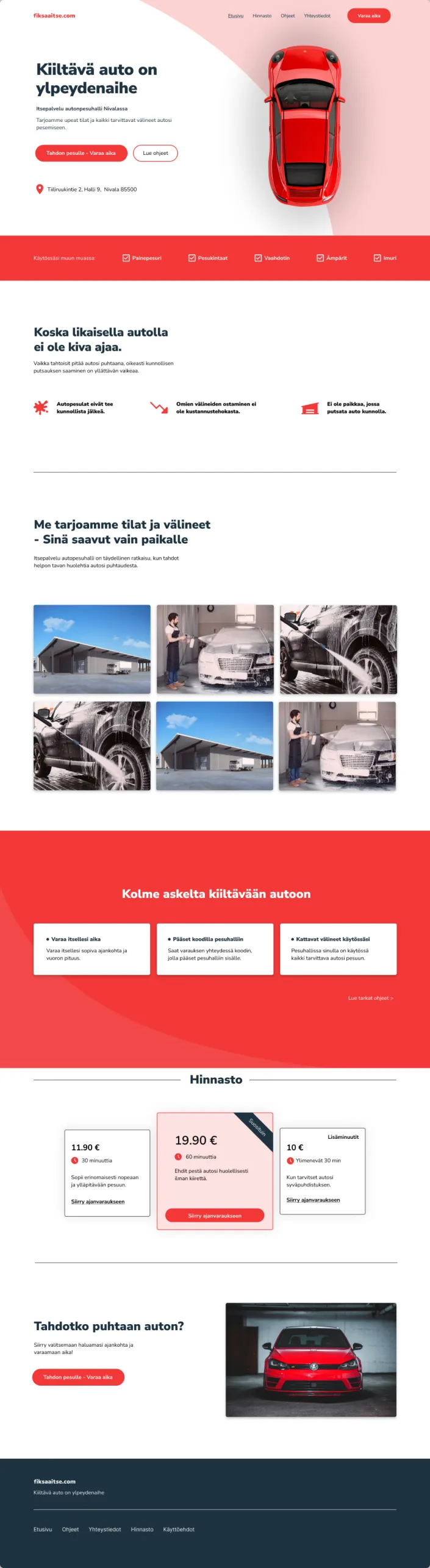 Sivusto rakennettiin kahdelle tasolle: etusivu toimii laskeutumissivuna palvelun jo tunteville – se kertoo ytimekkäästi mitä, missä, välineet, hinnat ja ohjeet. Lisäksi rakennettiin erillinen ohjesivusto niille, jotka tarvitsevat tarkemman kädestä pitäen -opastuksen ennen ostopäätöstä. Visuaalinen ilme luotiin yhden värin eri sävyillä, mikä tekee brändistä selkeän ja helposti laajennettavan.